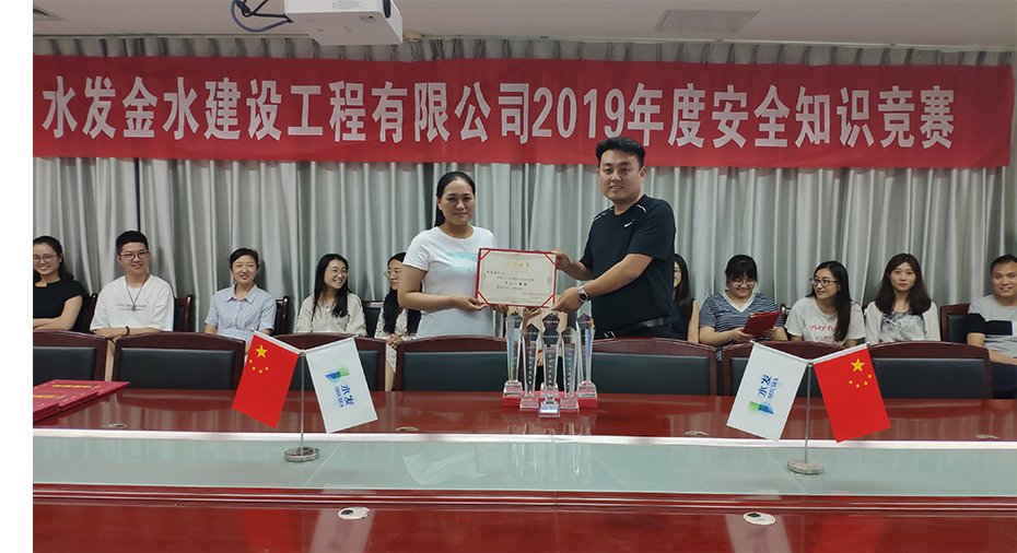 本次安全知識競賽采用水發金水建設工程有限公司《員工安全健康手冊》內容,包括辦公室安全、居家安全、出差旅行安全、交通出行安全及消防安全等多個方面,全方位考查了參賽隊員們的安全基本知識。在經過必答題、選答題等環節的緊張角逐后,最終金鄉縣金南水廠項目部榮獲團體一等獎,綜合部、財務部榮獲團體二等獎,工程部、經營部、魚臺濱湖水庫項目部榮獲團體三等獎。