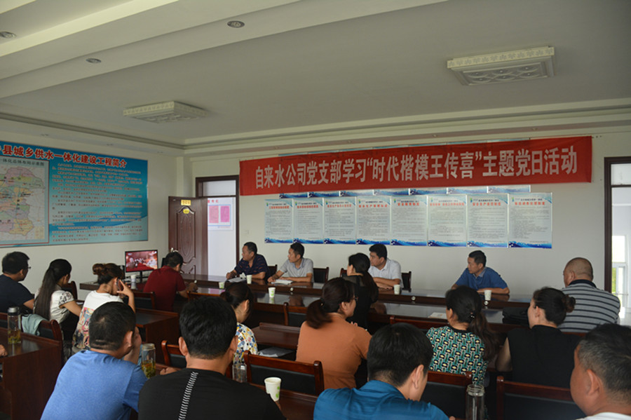為弘揚(yáng)楷模精神,爭做新時(shí)代先進(jìn)模范,8月23號(hào)上午,金鄉(xiāng)縣金思泉水務(wù)有限公司全體黨員在公司會(huì)議室開展了向“時(shí)代楷模”王傳喜同志學(xué)習(xí)主題黨日活動(dòng)。